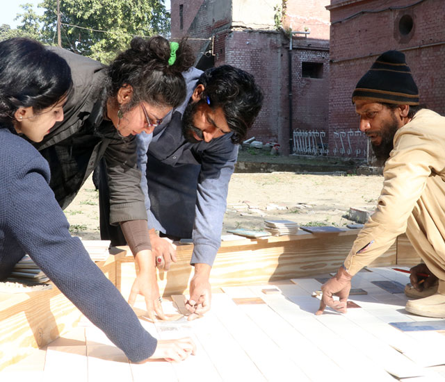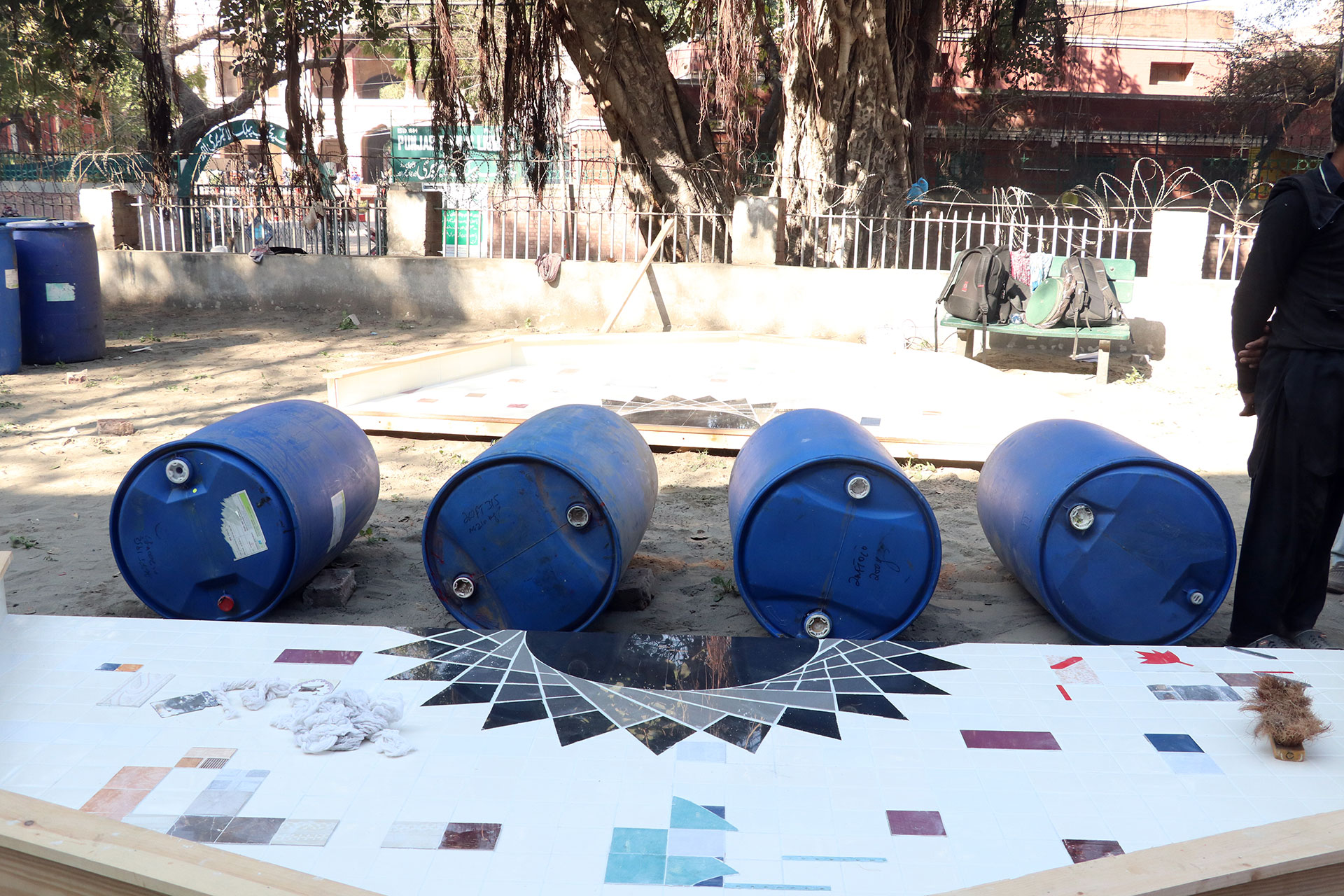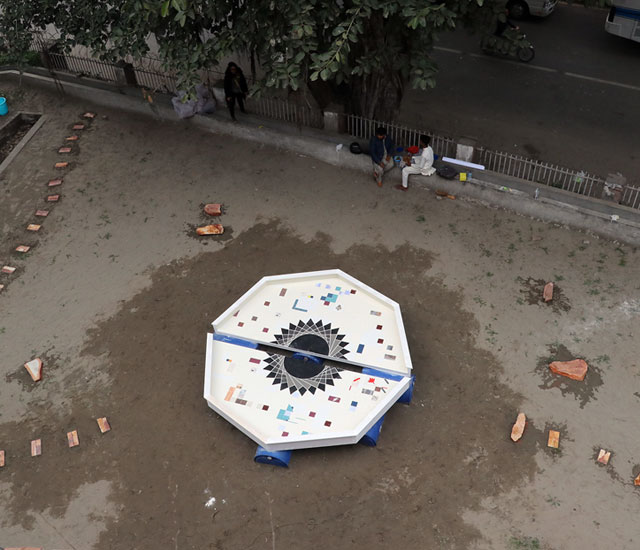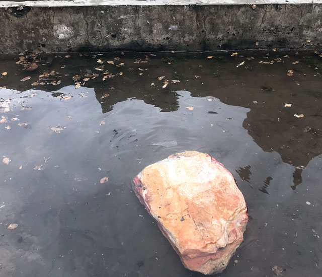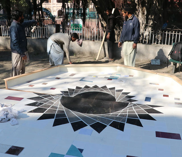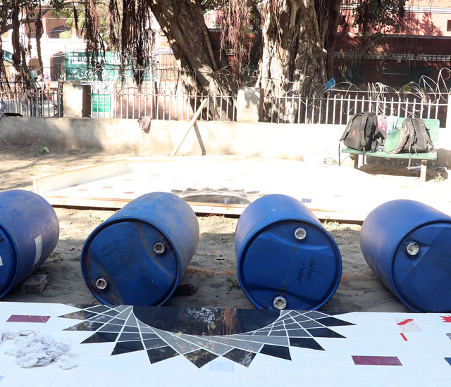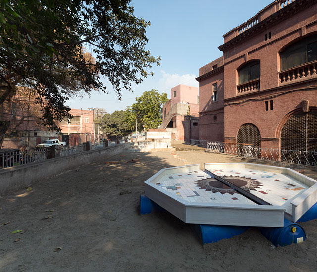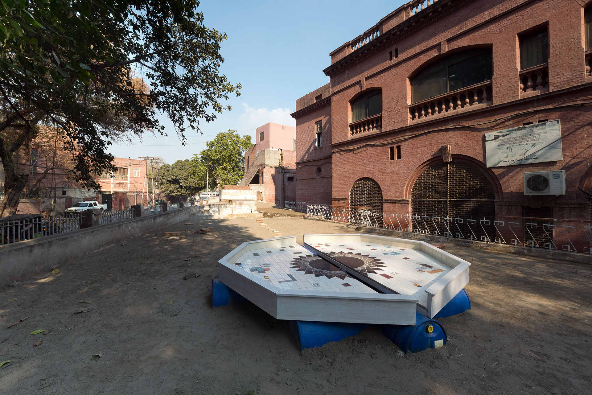 I Can Drink Stars is a sculptural intervention located on the ruined a miniature model of water management of the Ravi River, which itself situated on the grounds of Punjab Government’s Water Irrigation Department in Lahore. The installation examines the shared history of contested rivers and the entanglement of coloniality with cartography, extractive economies, and geological surveys. → See the Lahore Biennale exhibition